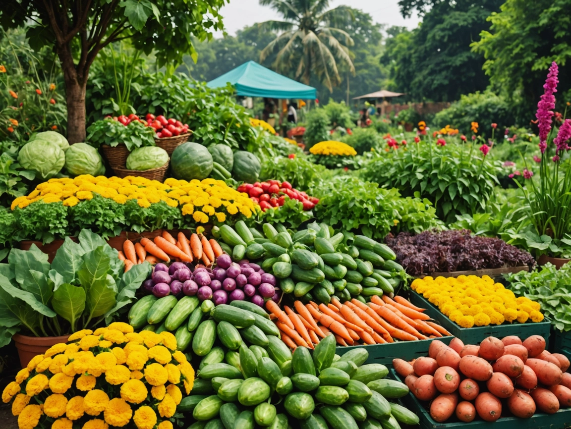 Bitter Gourd, Bottle Gourd, Ash Gourd, Snake Gourd, Beans, Brinjal, Cucumber, Maize, Tomato, Cabbage, Cauliflower, Drumstick